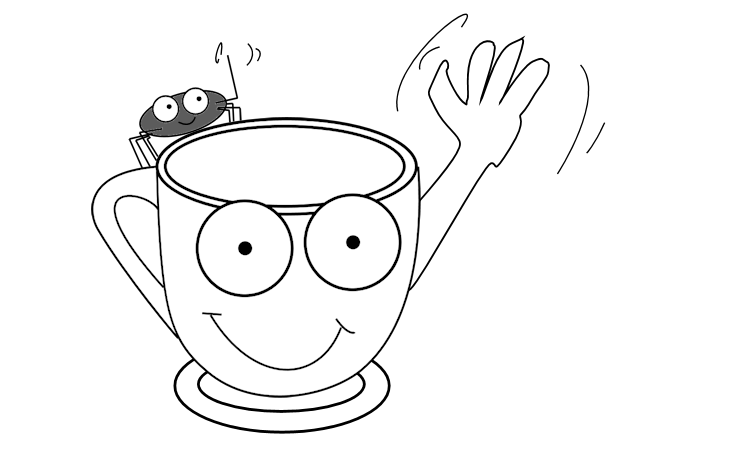 Sillycup is a character I've been drawing since my teens. He has his own website. He's always in trouble and usually appears with his pal 'Wiggles' who acts as his concience.