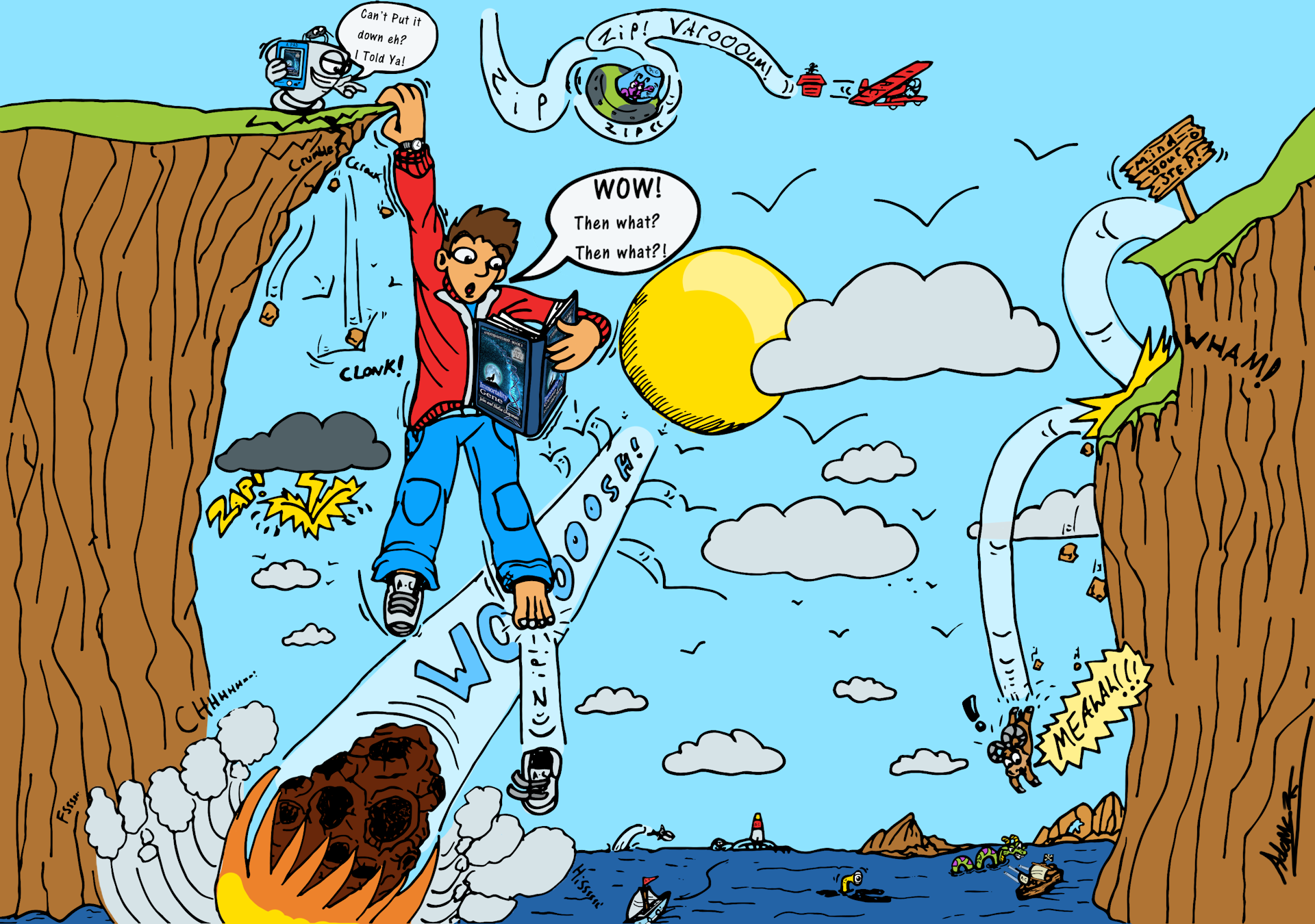 I originally produced this cartoon to advertise a new version of the book Immortality Gene. It has lots of things going on in the background.